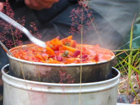 Vi gjorde läger på en sandudde med skyddad skärgård på ena sidan och öppet hav på andra. Middag åts, samvaro avnjöts och natten sovdes gott i tre tält.